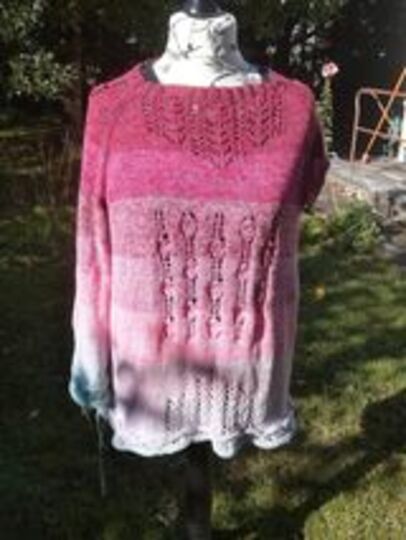 Die Größe ist variabel und wird beim Stricken individuell angepasst. Daher kann die Anleitung für alle Damengrößen heran gezogen werden. In der Anleitung sind Fotografien der Testerinnen in unterschiedlichen Größen mit jeweiliger Mengenangabe.