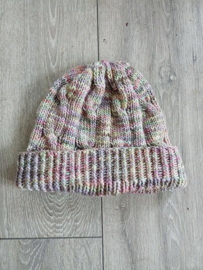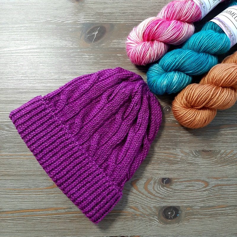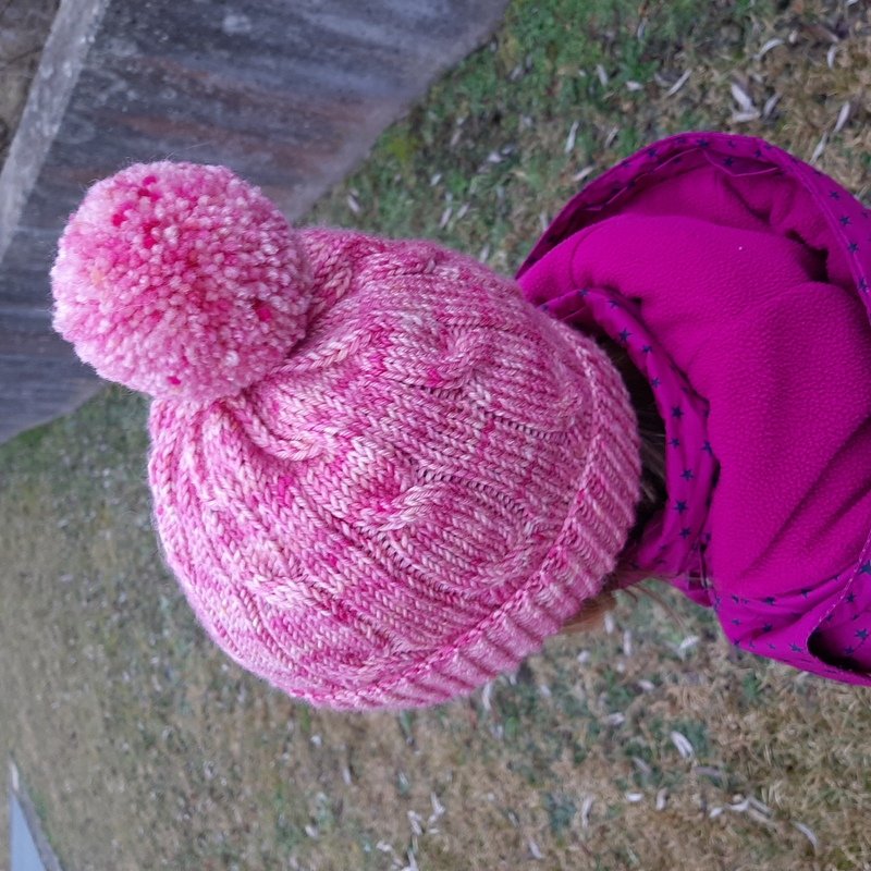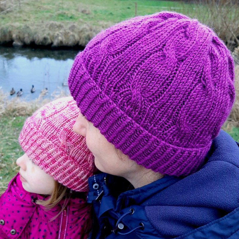 Die Anleitung „Mütze Charlotte“ ist eine Strickanleitung für eine Mütze mit Zöpfen und einem umgeschlagenen Bund mit verschränkten Maschen. Die Bezeichnung „Mütze Charlotte“ bezieht sich auf meine große Tochter, für die ich diese Mütze entworfen habe. Die Mütze kann sowohl für größere Kinder als auch für Erwachsene gestrickt werden.