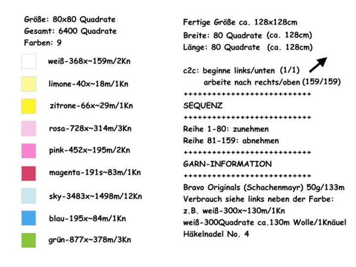 Größe der fertigen Decke: ca. 128x128cm