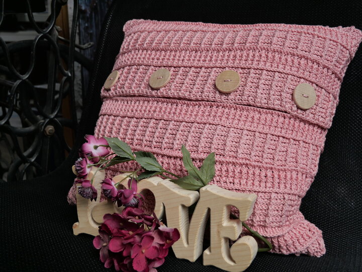 Die fertige Kissenhülle ist 40x40 cm groß. Das Muster kann aber ohne Probleme verkleinert oder vergrößert werden.