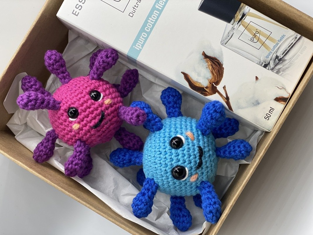 Mit dieser Häkelanleitung kannst du süße kleine Viren nachhäkeln. Super geeignet als Gag zum schenken.