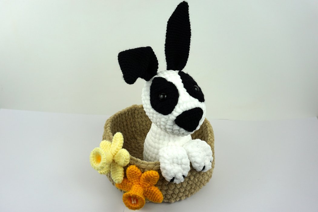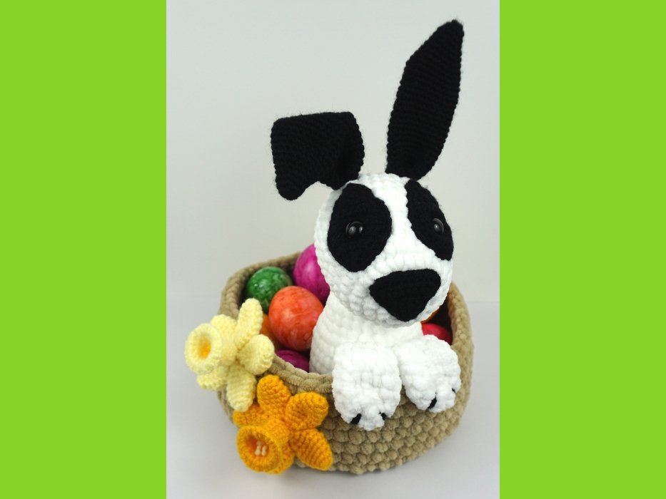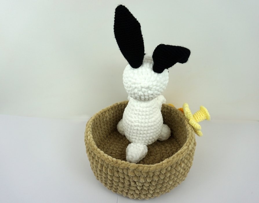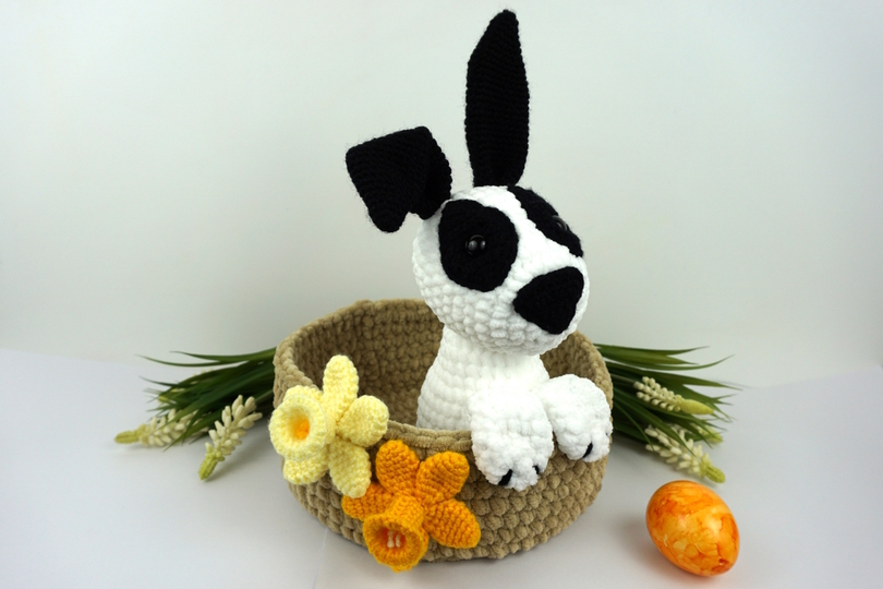 Der Hase Schnuppi wird mit der angegebenen Wolle ca. 27 cm groß.