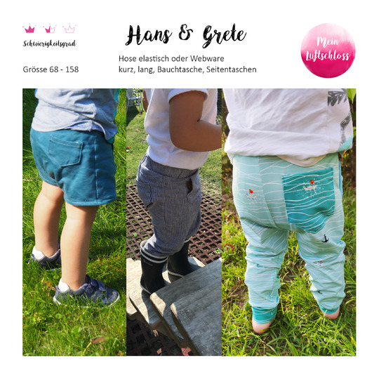 Die Hose ist ein Schnittmuster für Jungen und Mädchen von Grösse 68-158. Sie kann kurz oder lang genäht werden und mit verschiedenen Taschen. Der Bund wird mit Gummizug oder Bündchen genäht. Es kann ein Bindeband (nur zur Demo). Sie ist schlicht und ohne komplizierte Details. Jeder Schritt ist bebildert. Mit verschiedenen Stoffen, Bündchen, Applikationen und Taschen kannst du deiner Fantasie freien Lauf lassen und wunderbare Unikate nähen. Der Schnitt orientiert sich an der effektiven Grösse des Kindes, nicht an gekauften Grössen, d.h er fällt eher gross aus. Sie ist eher schmal geschnitten. Jetzt brauchst du eigentlich nur Stoff, eine Nähmaschine und gute Ideen...