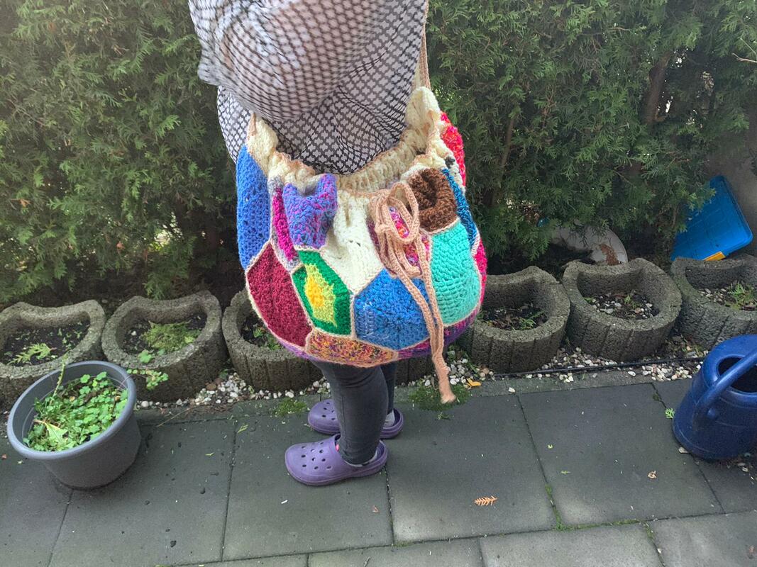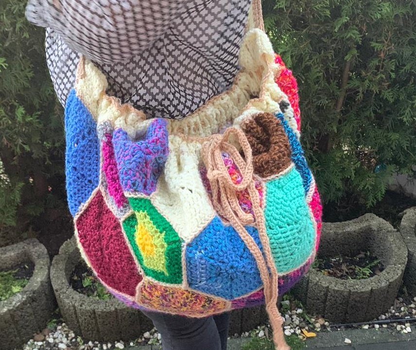 Dieser wunderbare Beutel ist entstanden, weil ich große Taschen liebe. Nun kann ich Wolle, Bücher und alles andere transportieren, da meine Handtasche zu klein dafür ist.