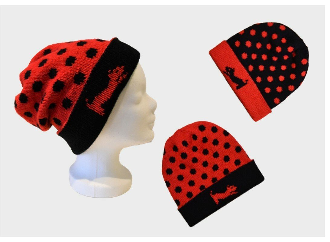 Dieses Beanie mit den zwei verspielten Hunden ist ein wärmender Begleiter in der kalten Jahreszeit. Durch die Doubleface Stricktechnik ist das Beanie schön dicht und kann von beiden Seiten getragen werden. Die Punkte machen gute Laune, und je nach Stimmung oder passend zur Kleidung kann es von der schwarzen oder von der roten Seite getragen werden. Oder Du entscheidest Dich für Deine eigenen Lieblingsfarben, das geht natürlich auch 😊