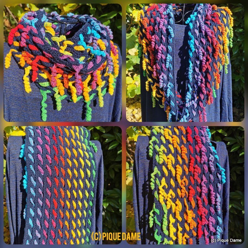 Ein Loop, genau richtig, um etwas Farbe in die grauen Wintertage zu bringen. Der Loop kann einfarbig oder eben kunterbunt gearbeitet werden. Egal wie, er ist echt ein Hingucker. Er kann beidseitig getragen werden (siehe Fotos)
