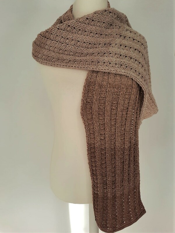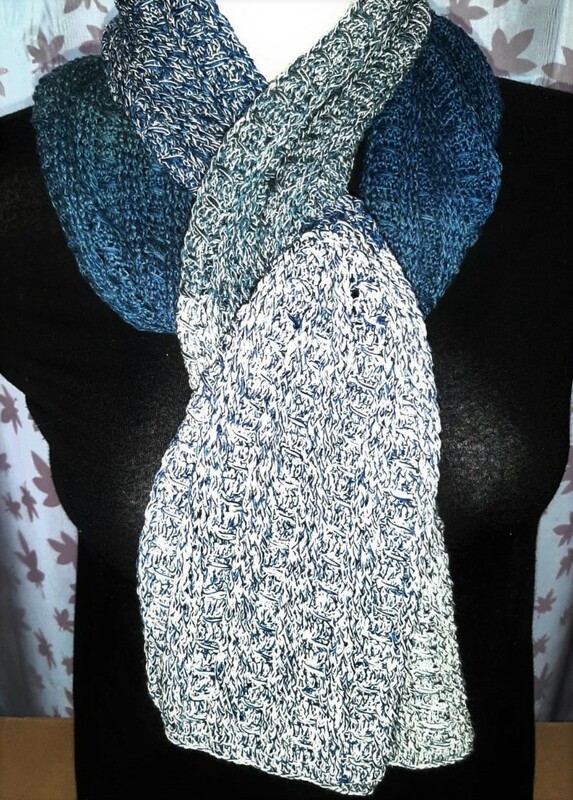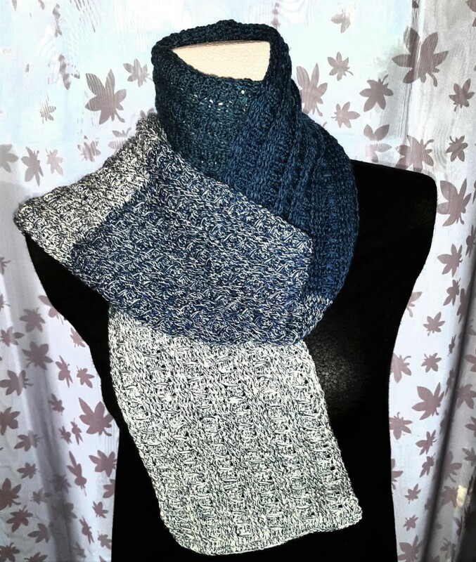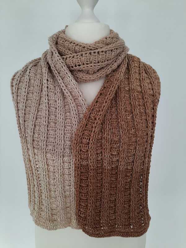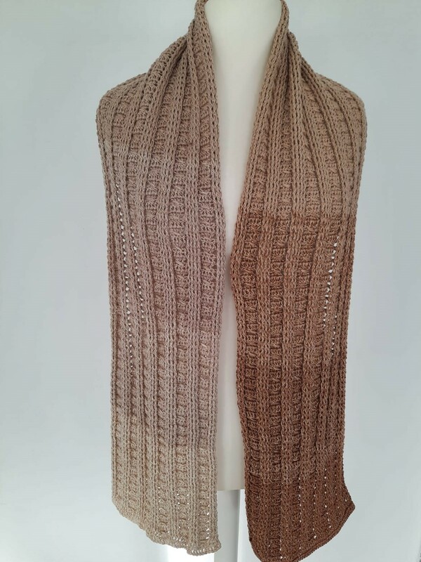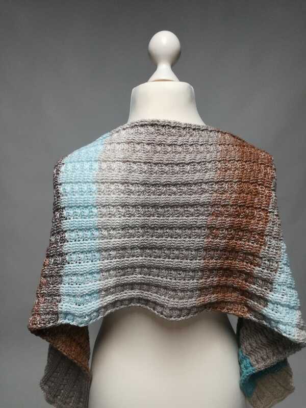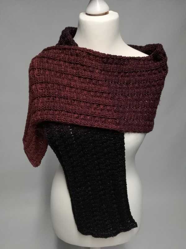 Der abgebildete Schal wurde aus 1000m 4-fädigem Farbverlaufsgarn (Knutschkugel Nr. 29 aus der Mützenstraße) gefertigt und misst 26 x 210 cm.