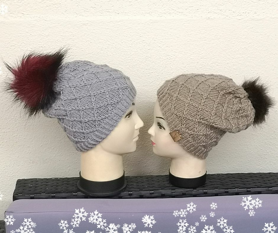 Beides ziert ein tolles und einfach zu strickendes Rautenmuster, das am Besten mit unifarbener oder nur leicht gemusterter Wolle zur Geltung kommt