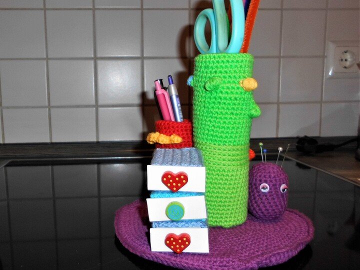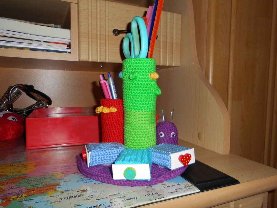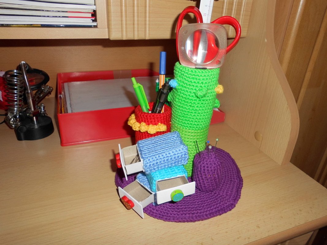 Bunt macht das Leben schöner ! Das Utensilo schafft Ordnung auf deinen Schreibtisch. Stifte, Schere, Zirkel, Lineal oder Büroklammern, alles kann geordnet aufbewahrt werden. Die Schubladen sind variabel und das kleine Nadel-Ei kann einzeln benutzt werden.