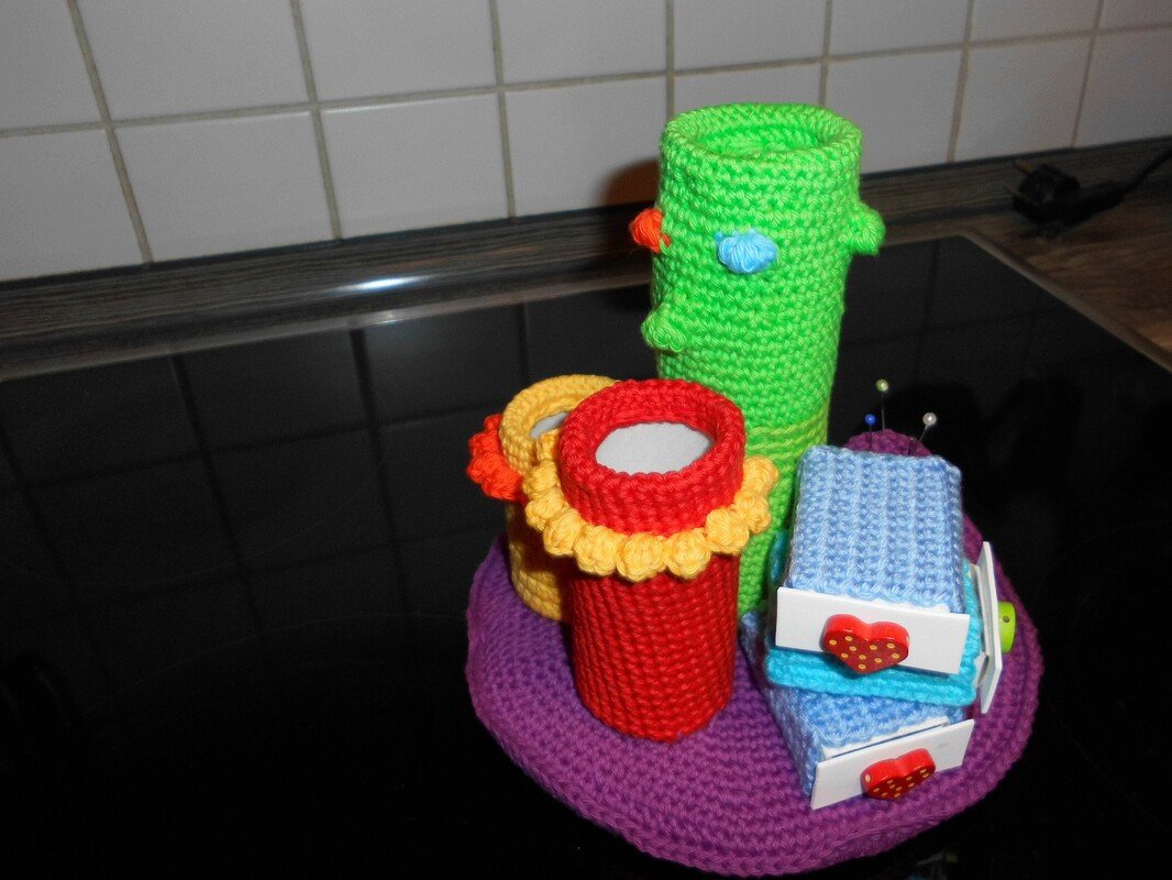 Das fertige Utensilo hat einen Durchmesser von ca. 17 cm und eine Höhe von 15 cm.