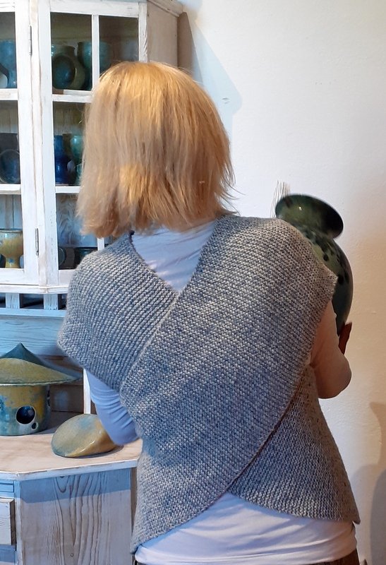 Gestrickt in 2 einzelnen , aber gleichen Schärpen im Krausrechtsmuster, ist es für jeden Anfänger geeignet.