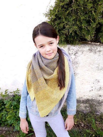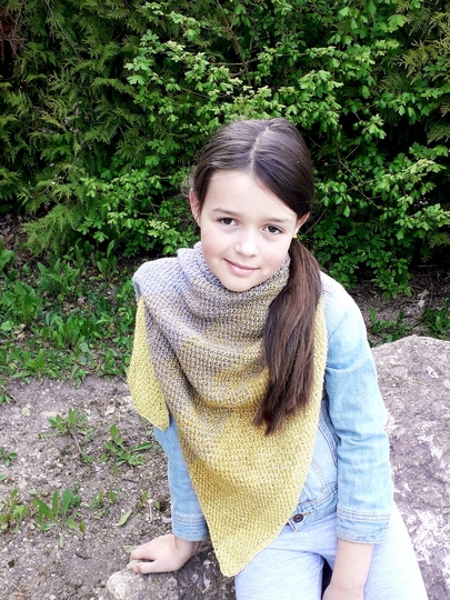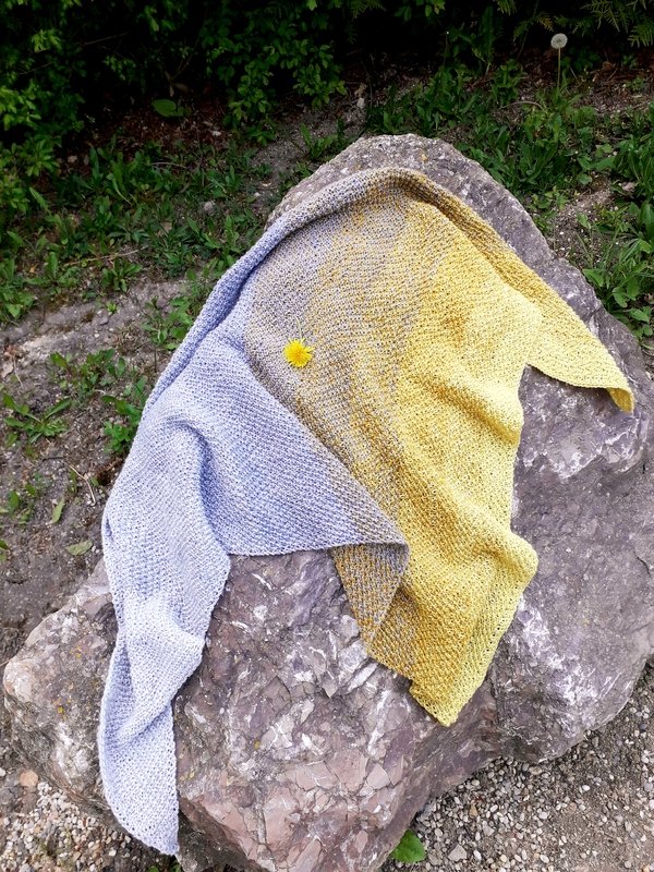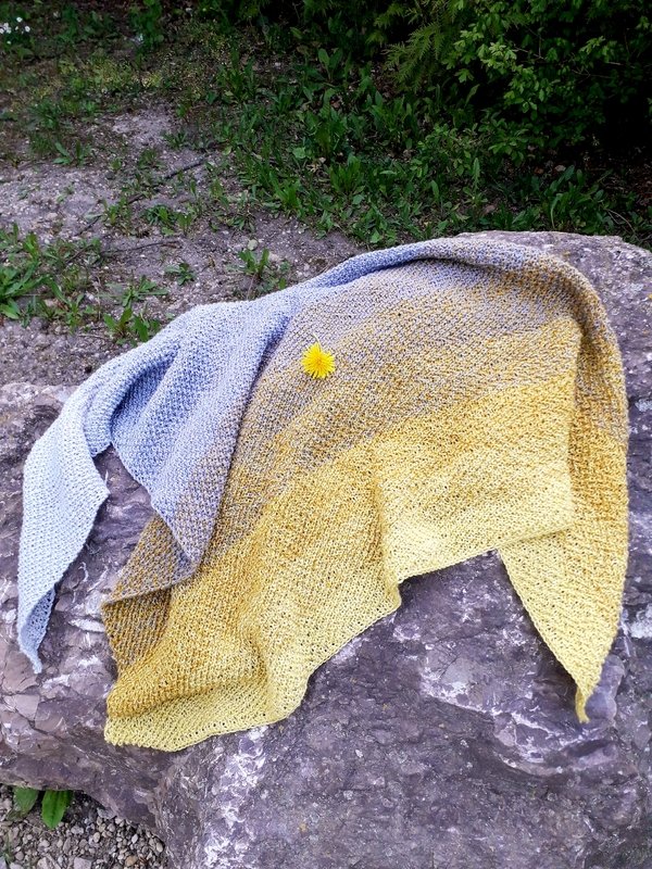 Das asymmetrische Dreiecktuch "La Perla" wird von der Ecke der längeren Kante aus im großen Perlmuster gestrickt.