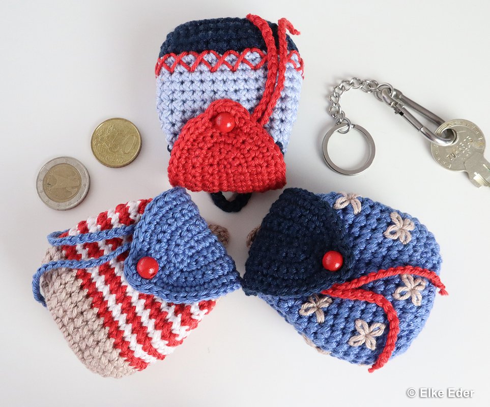 Durch den Einsatz der Doppelmasche sind die Rucksäcke wunderbar zum Besticken geeignet. Hier sind keine Grenzen gesetzt - du kannst sie wie gezeigt mit Kreuzstich oder Blümchen besticken, aber auch mit Zickzackstich, Hexenstich etc. Natürlich kannst du auch die Farben und die Farbaufteilung so variieren wie es dir gefällt.