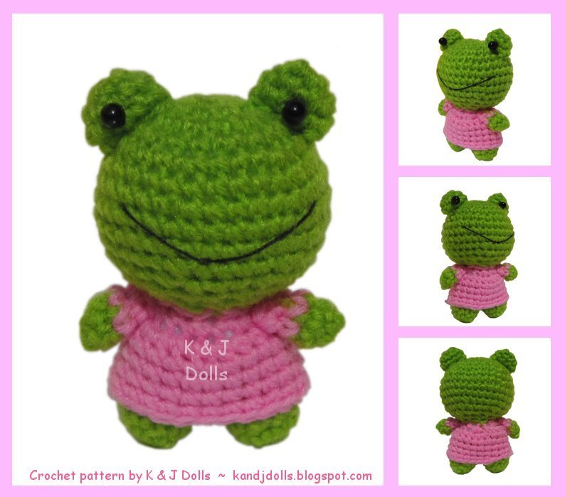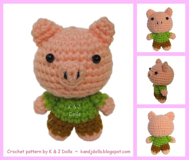 Häkelmuster für 5 kleine süße Tiere: ein kleiner Bär, Ferkel, Frosch, Hund und Hase.