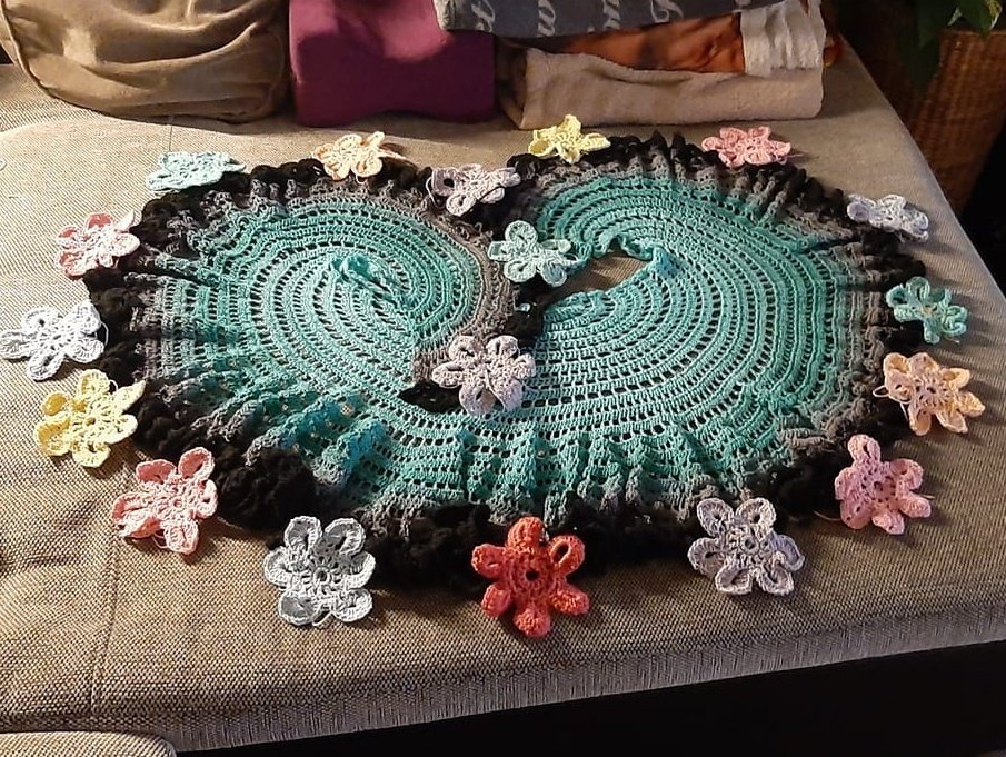 Umfang: ca. 6,78m ( das Tuch hat einen glockigen Rand der ihm den schönen Schwung verleiht).