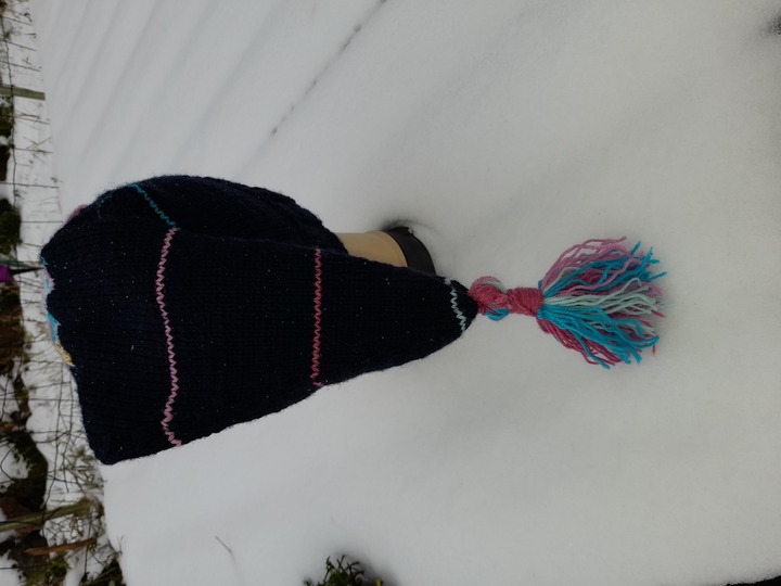 Diese Zipfelmütze wird glatt rechts gestrickt aus Merino Garn in Nadelstärke 4 – 4,5 und somit schön mollig warm.