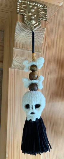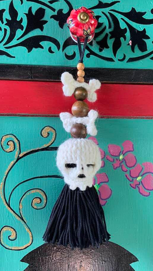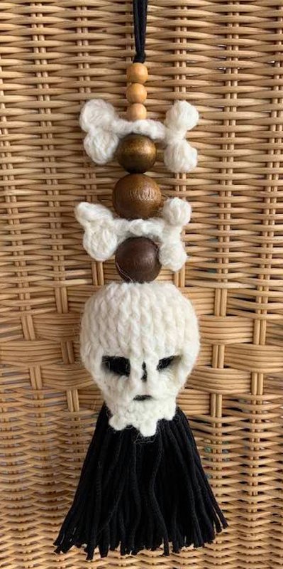 Quaste SKULL & kleinen Knochen ist ein lustiger Anhänger, für Deinen Rückspiegel, als Schlüsselquaste für den Schrankschlüssel oder einfach so als Dekoration...
