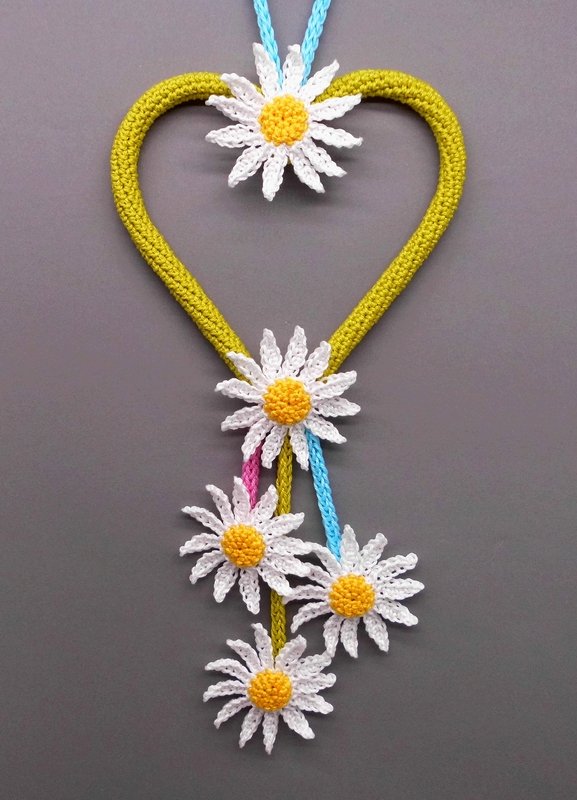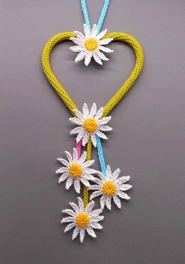 Du kannst auch jedes andere Garn verwenden, die Größe der Herzen und Margeriten ändert sich dann ggf.
