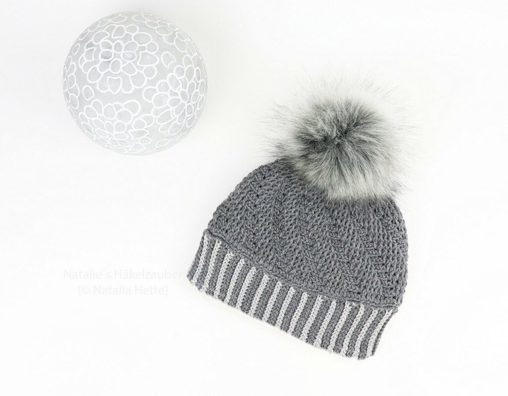 Eine warme Mütze mit einem Reliefmuster "Henri" für die ganze Familie (im Stricklook)! Diese Mütze ist leicht nachzuhäkeln. Sie ist nach ca. 4-5 Stunden (abhängig von der Größe) fertig und mit einer großen Bommel (Kunstfell) ein echter Hingucker! Die Mütze wird von unten nach oben gehäkelt. Diese Mütze kann sowohl für Kinder, als auch für Erwachsenen gehäkelt werden.