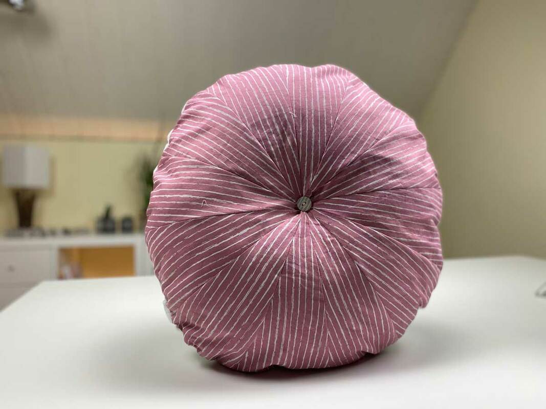 Dieses großes runde Kissen lädt dich zum Ausruhen ein. Es macht dein Sofa zum Hingucker. Die Anleitung ist für sehr gut für Anfänger geeignet. Hier musst du einfach nur mit dem Gradstich nähen.