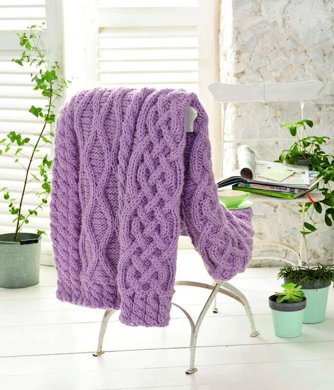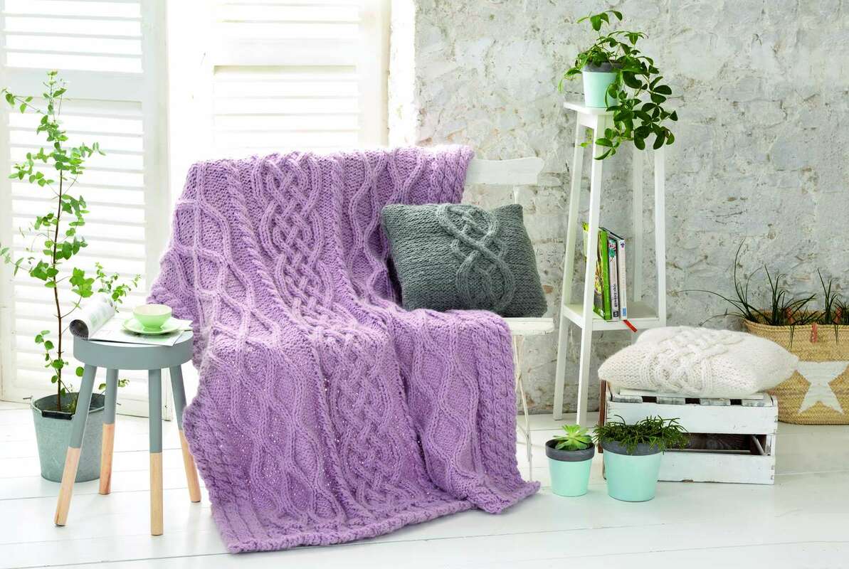 Zopfmuster Hits: Wer gerne Zopfmuster strickt der kann sich beim Stricken der Kuscheldecke so richtig "austoben". Drei verschiedenen Muster werden hier aus Alpaka-Polyacrylmischung miteinander kombiniert.