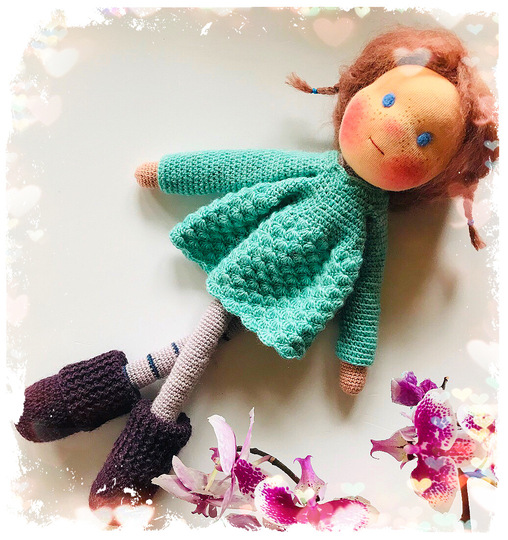 Diese außergewöhnliche Häkelanleitung enthält alle Informationen um Deine eigene Herzpuppe Lotta zu häkeln.