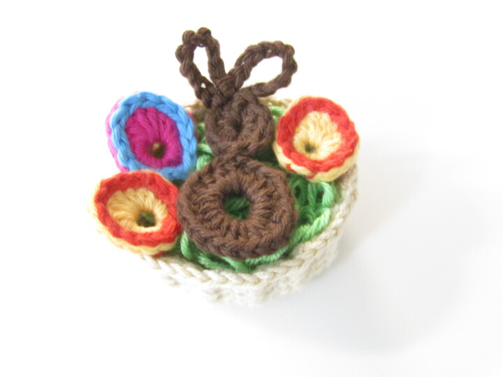Der Hase ist 6 cm groß, die Ostereier sind 2,7 cm hoch. Je nach Stärke des verwendeten Garns kann die Größe abweichen.