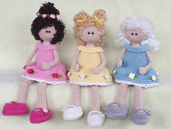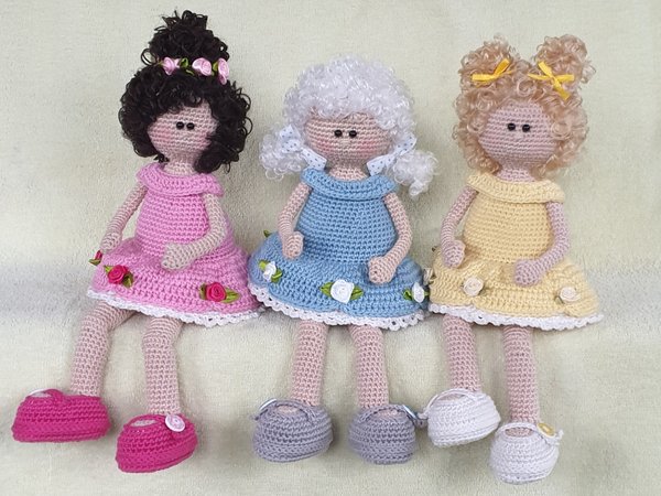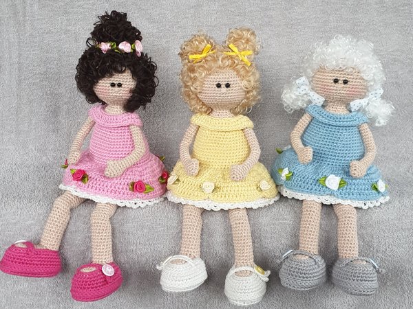 ♡ Baumwolle 50gr / 125m ( zB. Schachenmayr Catania , Sheepjes Catona oder Woll Butt Camilla ) Verbrauch für 1 Mäderl : 40gr hautfarbe , 10gr weiß für den Unterrock, 30gr Wunschfarbe für das Kleidchen, 15gr Wunschfarbe für die Schuhe