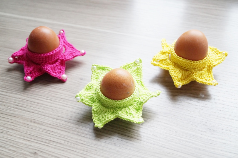 Ihr wollt Farbe auf dem Frühstückstisch ,dann könnt Ihr hier mit dieser Häkelanleitung die Eierbecher "Sternchen " nacharbeiten.Der Farbwahl sind keine Grenzen gesetzt.