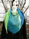 Strickanleitung Dreieckstuch "Aquarius". Mix aus verschiedenen Loch- und Zopfmustern gestrickt aus 4-fädigem Baumwollgarn