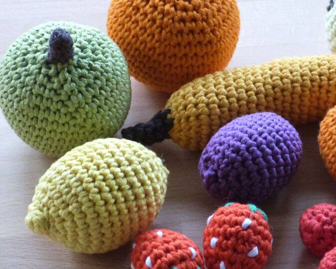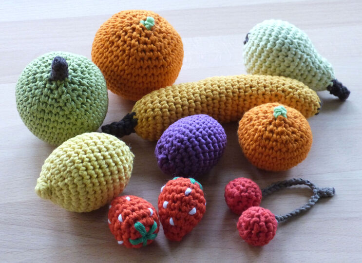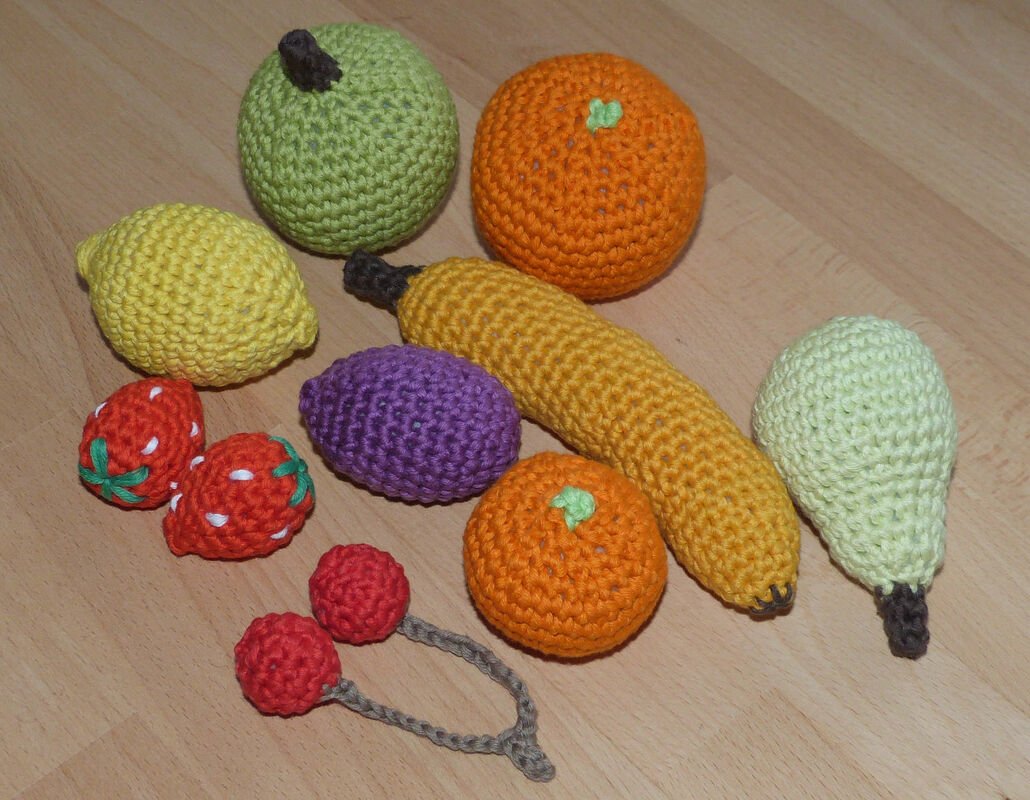 Mit Essen spielt man nicht? Hiermit schon! Leckeres und gesundes Obst für Kaufladen oder Kinderküche ganz einfach selbst häkeln! Auch als Deko für Küche oder Esszimmer geeignet!