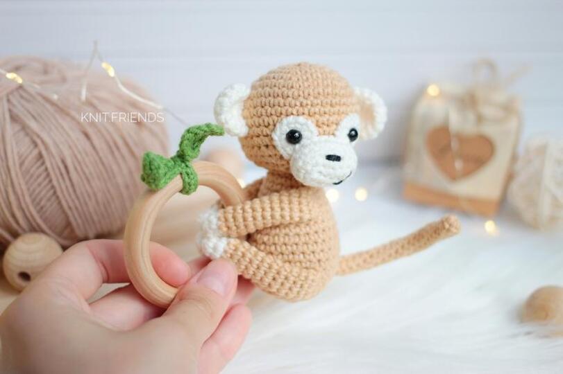 Niedliche Anleitung zum Häkeln eines lustigen Affen an einem Ring für Ihr Baby