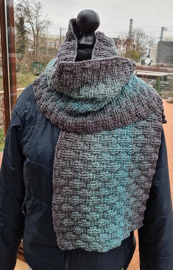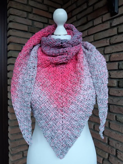 Der Schal, den ich als Beispiel gehäkelt habe, hat eine Breite von ca 27 cm und eine Länge von ca. 190 cm, das Tuch hat ein Größe von 180 cm x 90 cm;