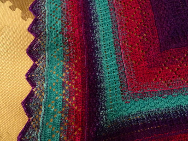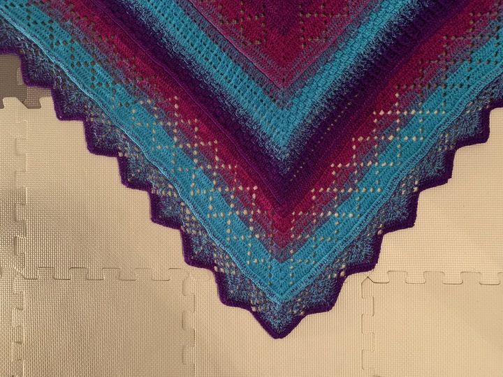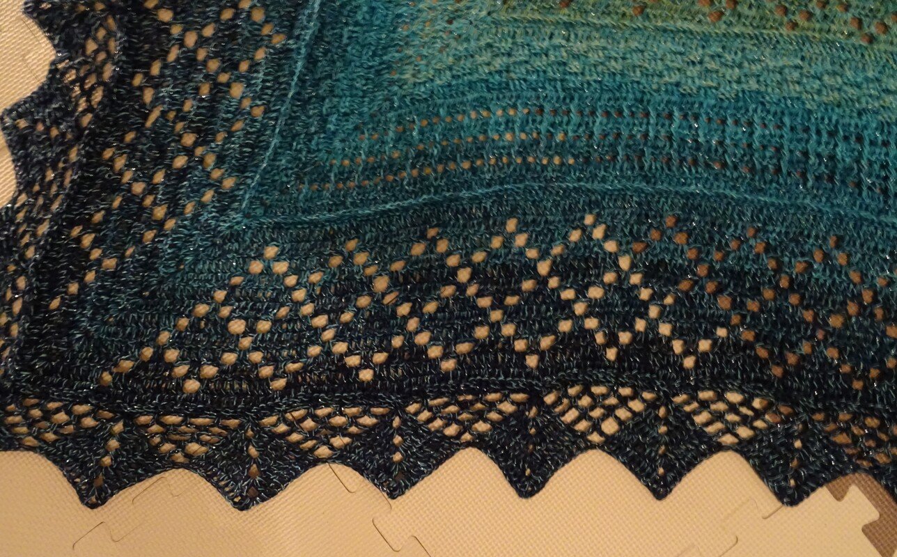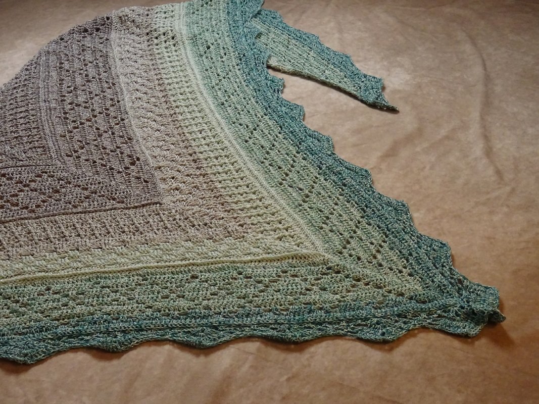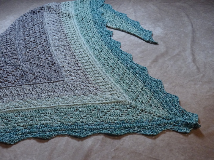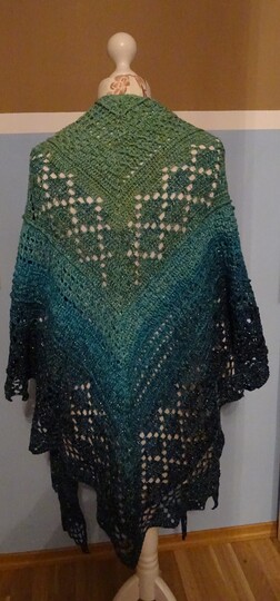 Mit 1500mll und 5fädig und einer NS 4,0 wird das Tuch 235cm x 97cm groß