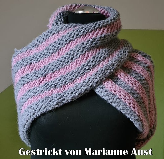 Du kannst den Loop in jeder Größe stricken. Wenn er nur einmal um den Hals passen soll, orientiere dich an deinem Kopfumfang. Soll der Loop doppelt um den Hals gelegt werden, gilt die Faustregel Kopfumfang in cm x 2,5.