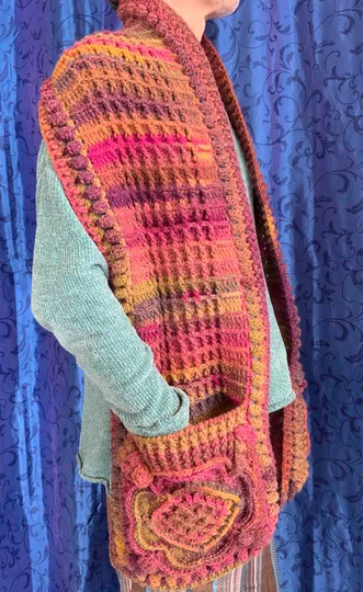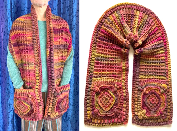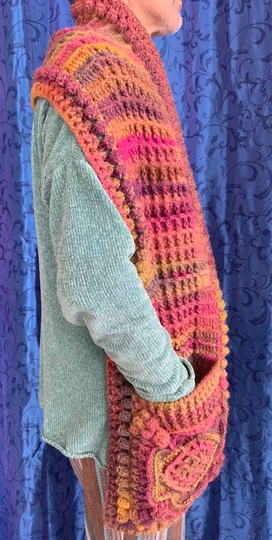 Der Taschenschal „Wundervoll“, mit vielen, herrlichen Reliefstäbchen sieht einfach wundervoll aus...er schmiegt sich wärmend um die Schultern + Hals und Deine Hände können in den großen Taschen versinken...