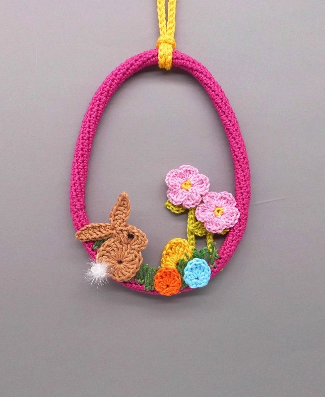 Die Anleitung umfasst neben den schriftlichen Häkelerklärungen auch die Häkelschriften für die Deko-Elemente und viele, detailreiche Schritt für Schritt Fotos mit Erklärungen, damit Du die Oster-Deko ganz einfach erfolgreich nachhäkeln kannst.