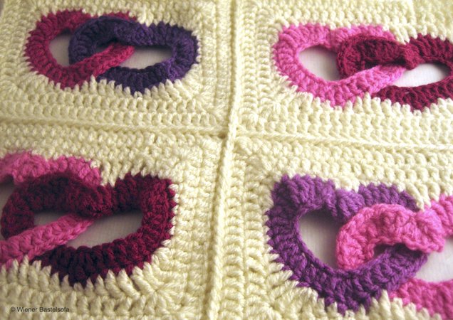 Das “verliebte Granny Square“ ist das perfekte für Muster für Häkelprojekte wie Decken oder Kissen zu Valentine, Muttertag, Hochzeit oder Taufe.