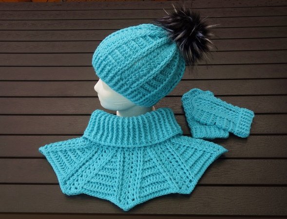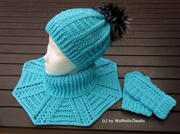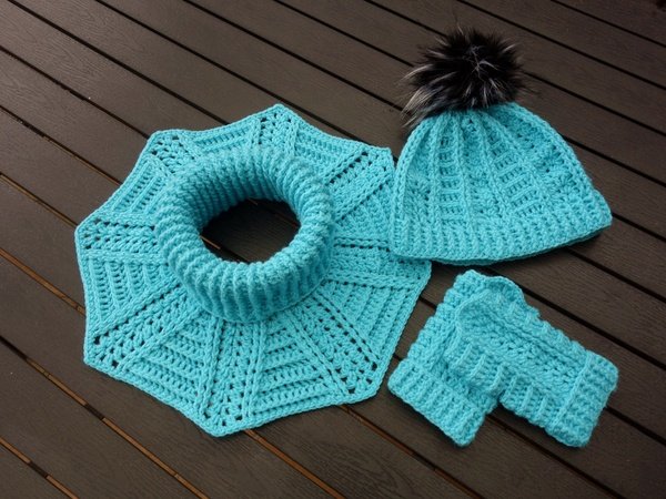 Dieses tolle 3er-Set, bestehend aus Schalkragen + passender Mütze + Handstulpen, ist schnell angefertigt und hält schön warm.