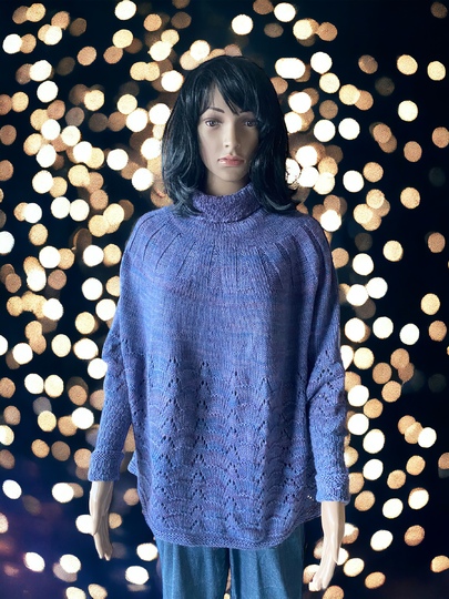 er kann leicht individuell angepasst werden, da er vom Hals runter gestrickt wird, hier ist XL angegeben