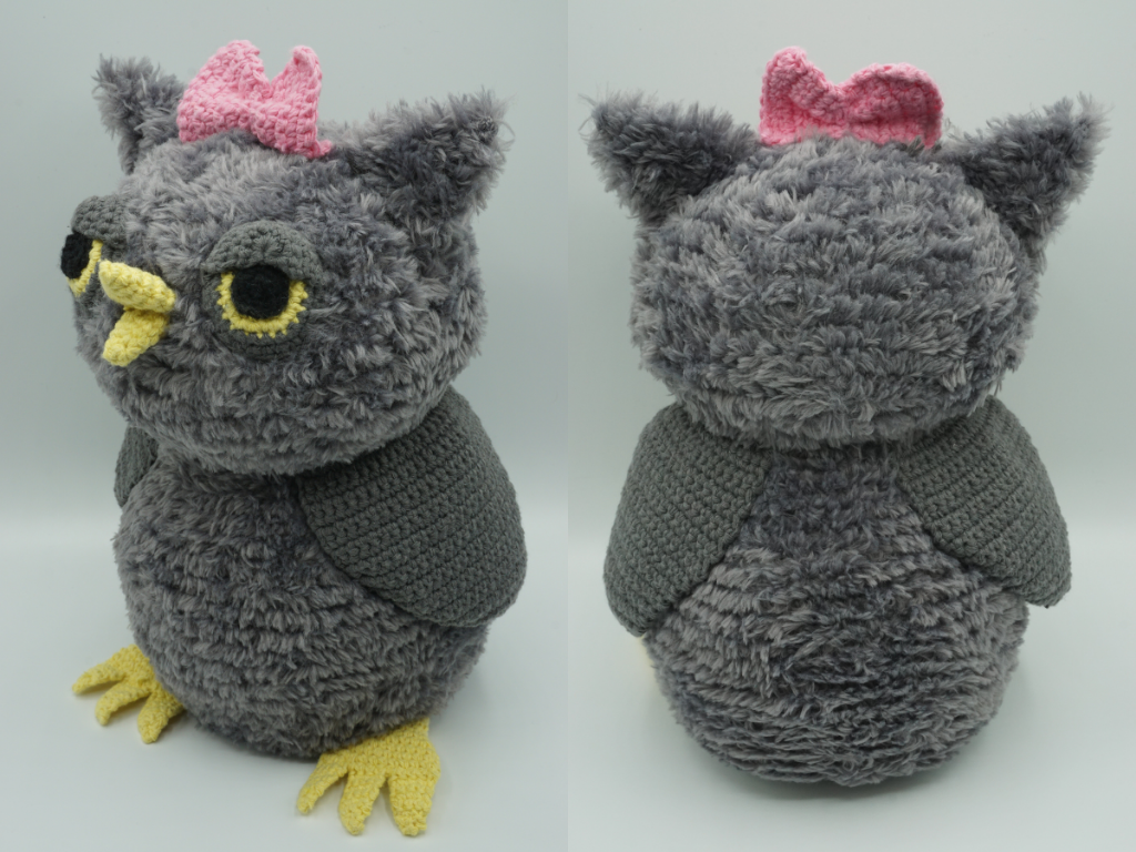 Farben: grau + dunkelgrau (Plüsch) + dunkelgrau + gelb + schwarz + rosa