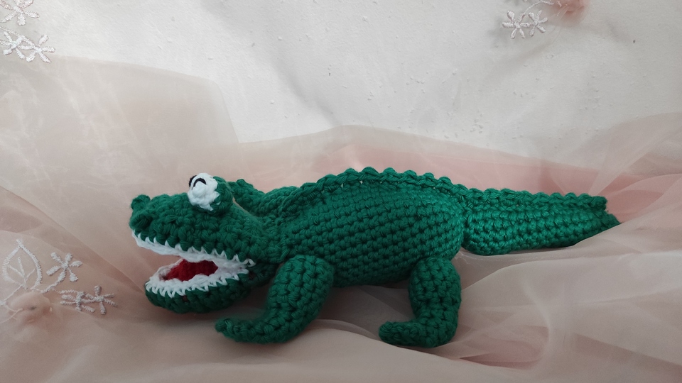 Dieses Krokodil sieht bedrohlich aus, ist aber ganz lieb und kuschelig.