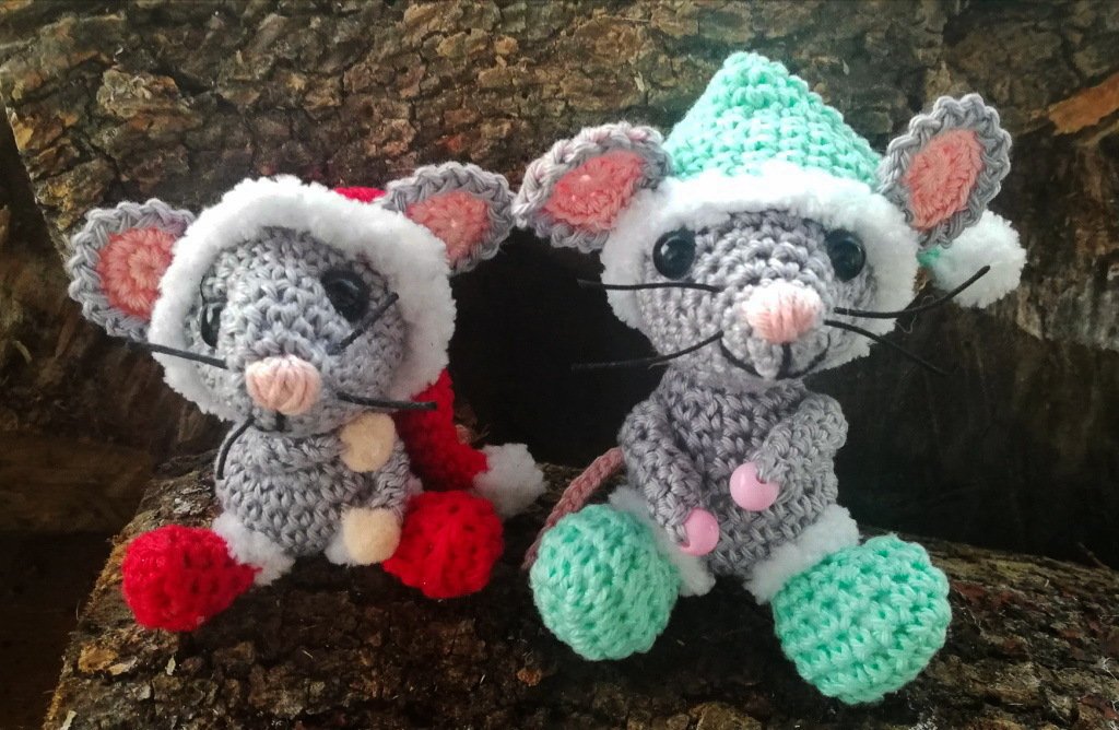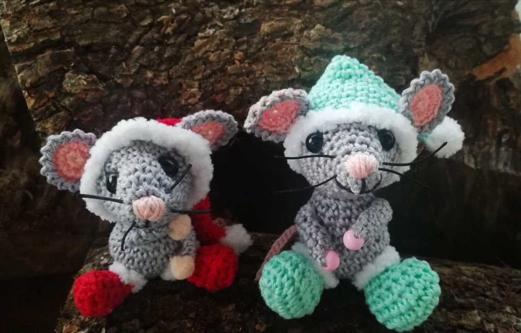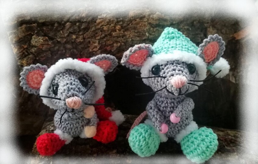 Ganz süsse Mäuse, entweder als Schlafmützchen oder als Weihnachtsmaus, schnell gemacht, frech fröhlich , immer ein gutes kleines Geschenk für jeden Anlass.