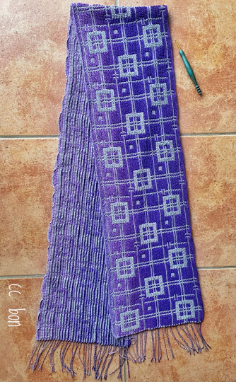 Die Anleitung enthält ein Besipiel (inkl. Fotos), wie die Fransen aus den Endfäden gearbeitet werden können.