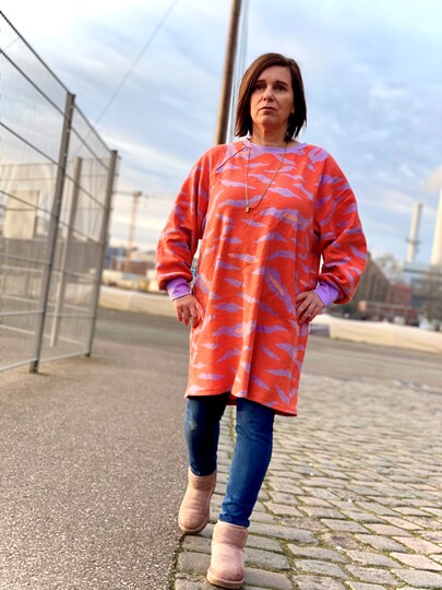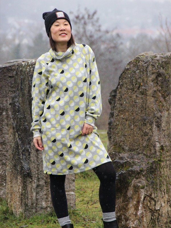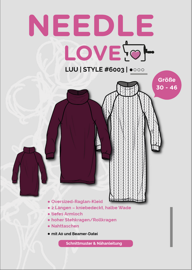 LUU ist ein angesagtes, lässiges Raglankleid in 2 verschiedenen Längen – oversized, überlange Ärmel, tiefes Armloch. So richtig zum Reinkuscheln mit extra hohem Kragen! Garantiert das neue Lieblings-Piece in Deiner Garderobe!