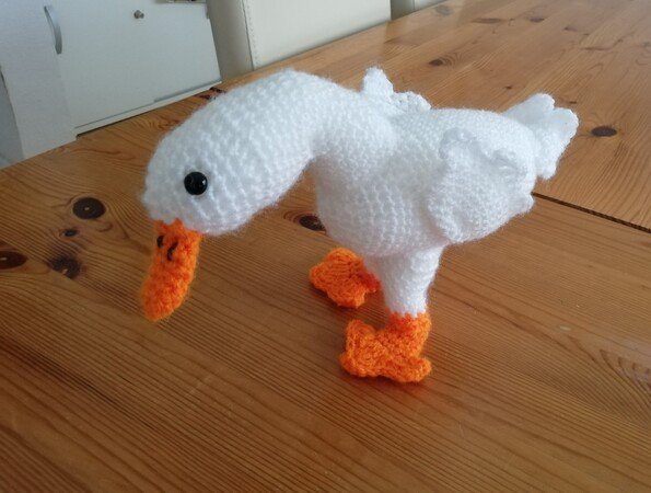 Frau Greta Gans ist ein hübscher Blickfang auf eurem Regal oder eurer Fensterbank. Einen schönen Platz auf einem Sideboard würde sie auch nicht verachten.