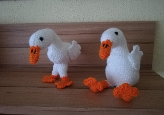 Überwiegend wird mit festen Maschen (fM) gearbeitet. Zum Gestalten der Füße und Flügel