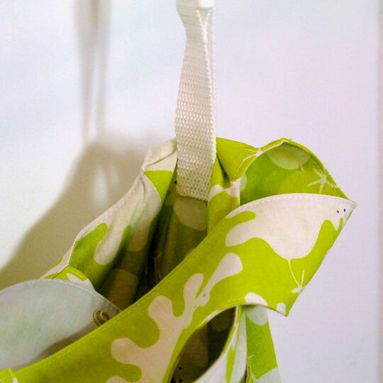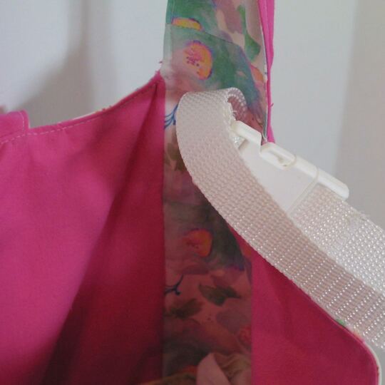 große Einkaufstasche bzw. Kinderwagentasche, die zwischen die Kinderwagenholme passt.