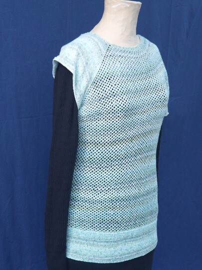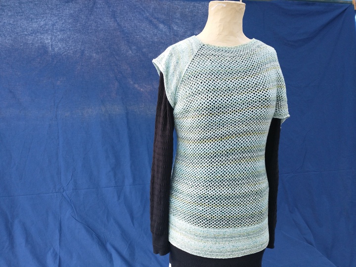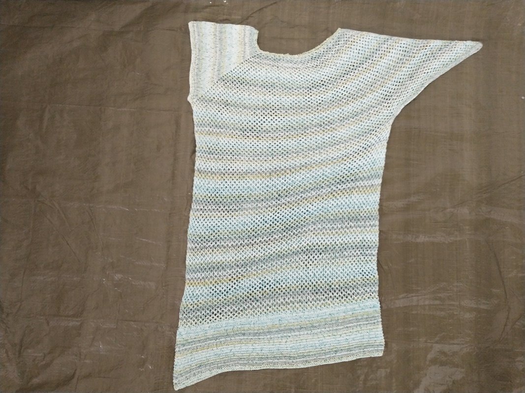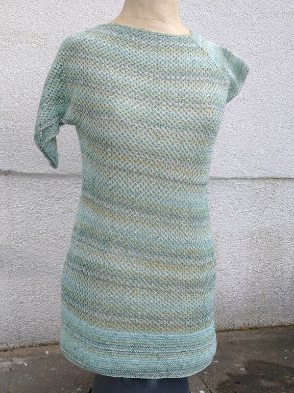 Eine luftige asymmetrische Tunika, die in Runden von oben nach unten gestrickt wird.