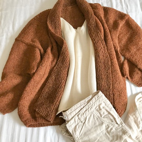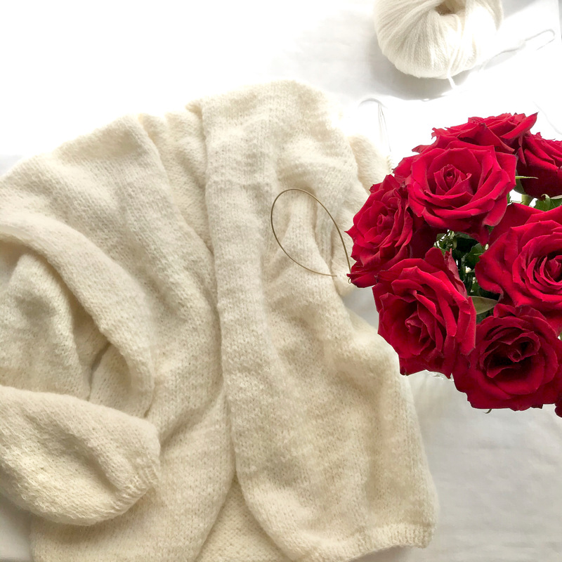 Der Cardigan wird von unten nach oben in Hin- und Rückreihen gestrickt.